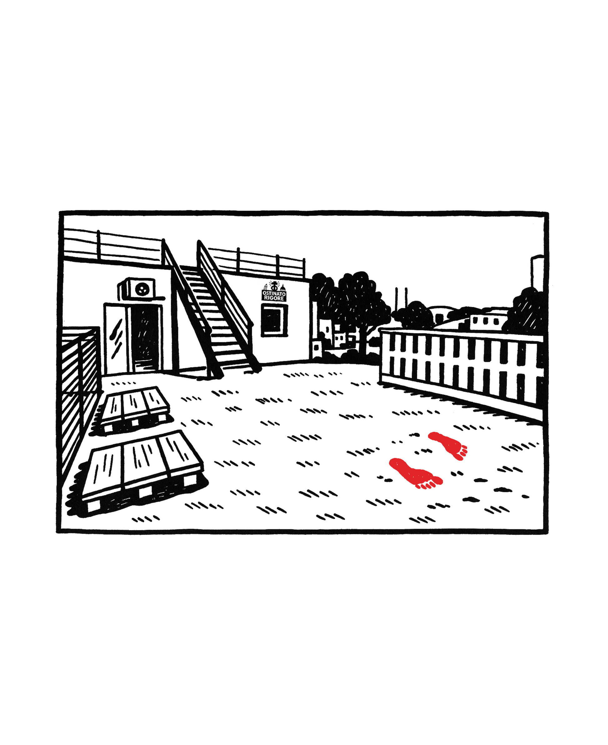 Ilustracija prikazuje krov Gacka16 Hub-a s tragovima bosih nogu. Prema legendi, misteriozni čovjek ostavio je tenisice na pragu i nastavio koračati dalje - sasvim bos. Neki kažu iz protesta, neki iz oslobođenja. U svakom slučaju, taj trenutak postao je simbol autentičnosti, otpora i tihe snage.